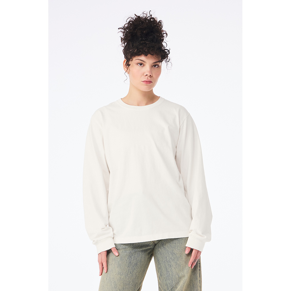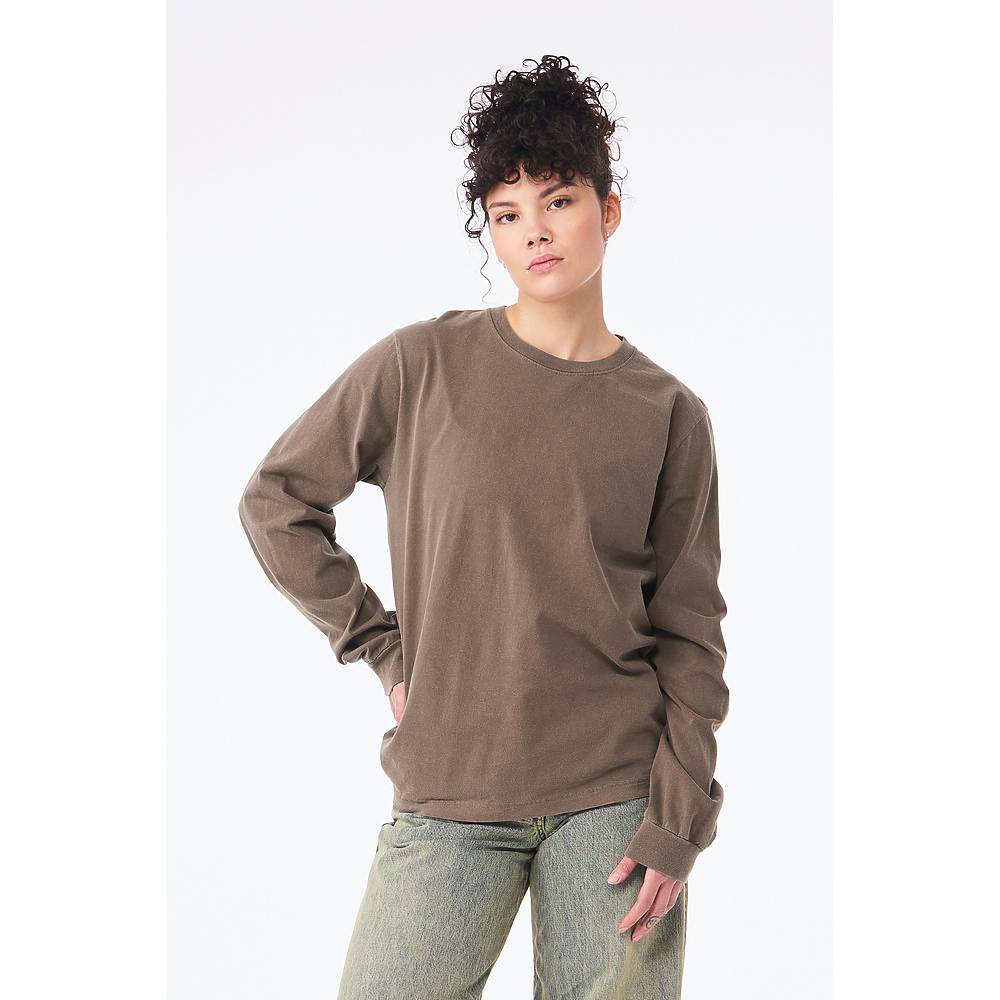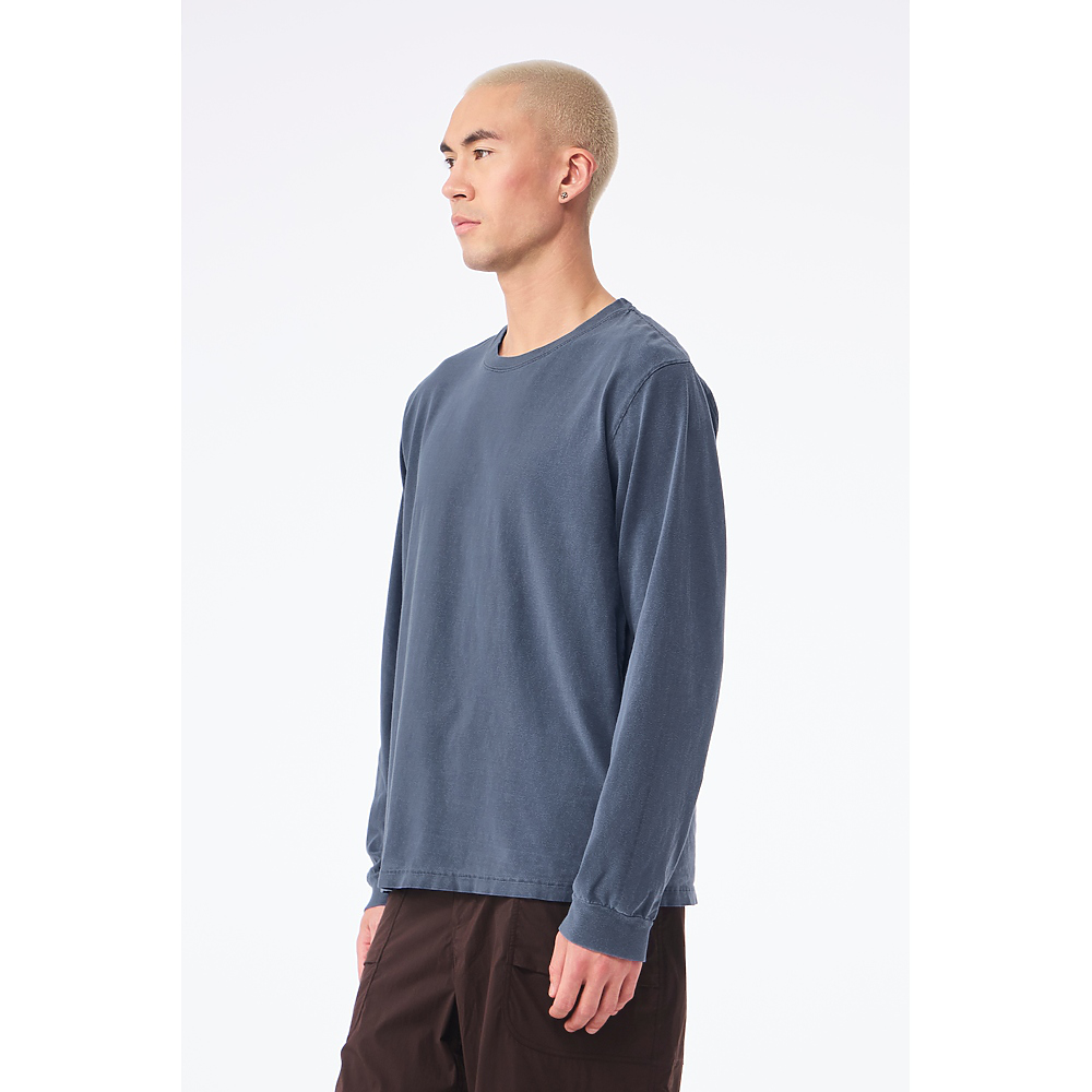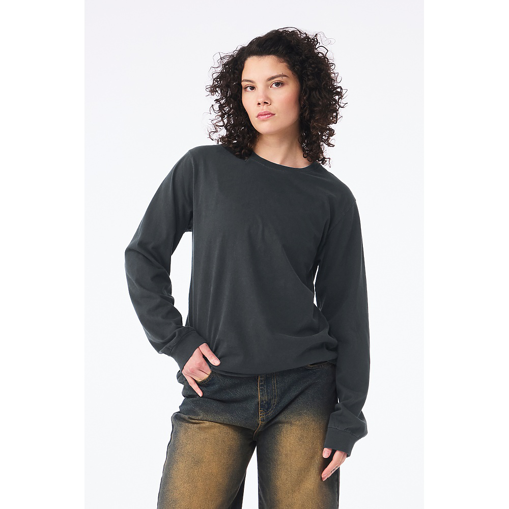• Iconic from the start, the Unisex Heavyweight Garment Dye Long Sleeve Tee features a washed, lived-in look, while the fabric and an inclusive fit provide unmatched versatility. Available in a curated selection of 12 colors, this style features exceptional details such as the double needle top stitched neck, side-seams, and tear away label for an unmatched combination of style, comfort, versatility, and quality.
