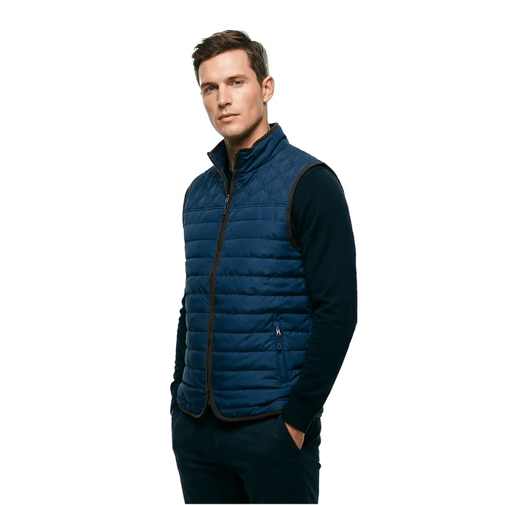 • 100% quilted nylon puffer vest with flannel-lined interior