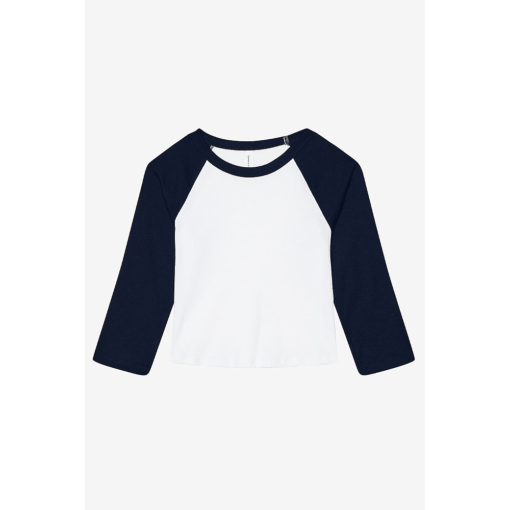 It's a home run. The iconic baseball 3/4 sleeve tee just made it to the big leagues with the game-changing softness of 1x1 micro rib, a silhouette-flattering fit, and a versatile mid-length hem. This must-have style features the classic contrast raglan sleeves and crewneck binding making it the star player in closets everywhere.