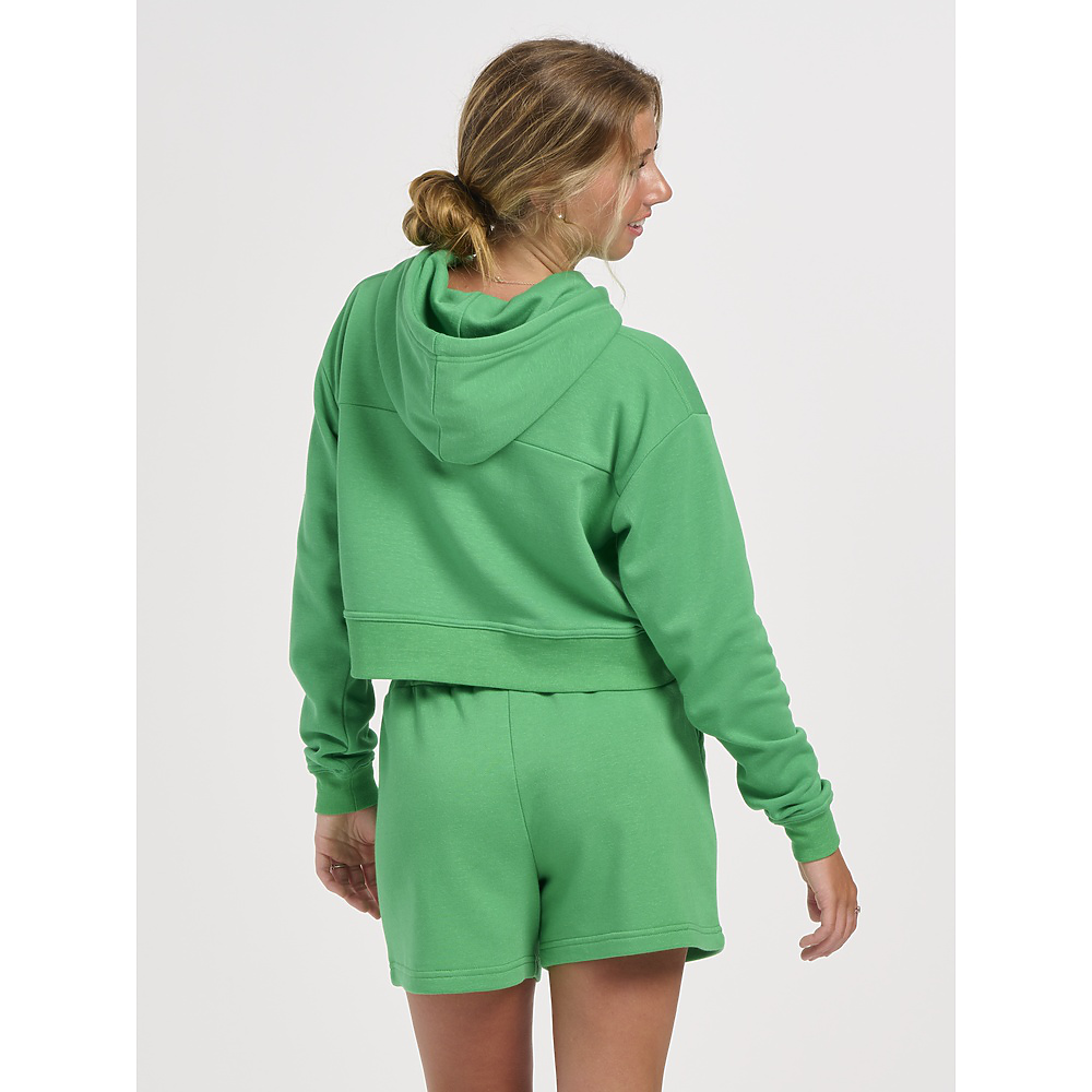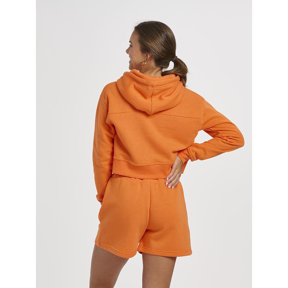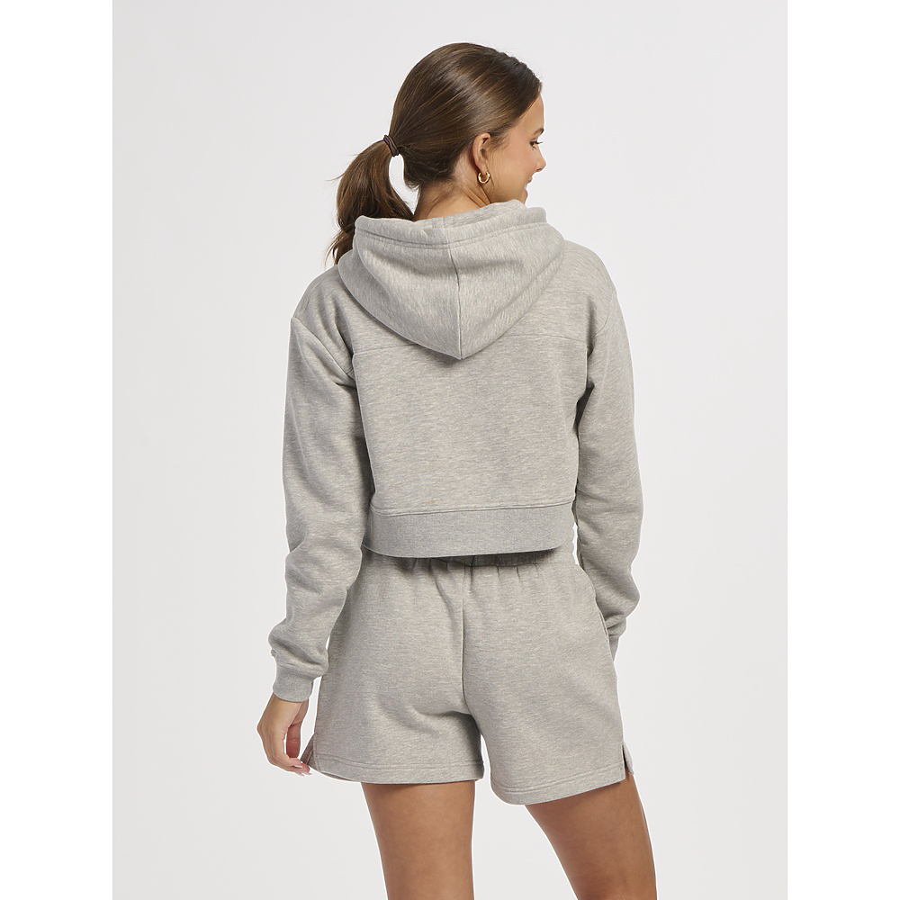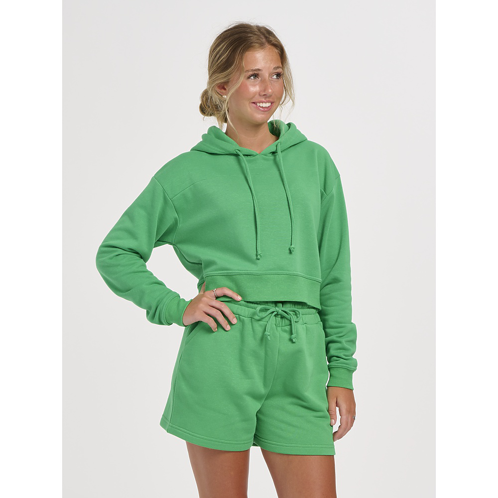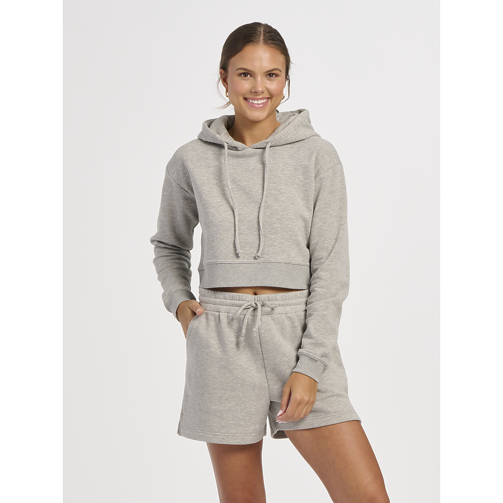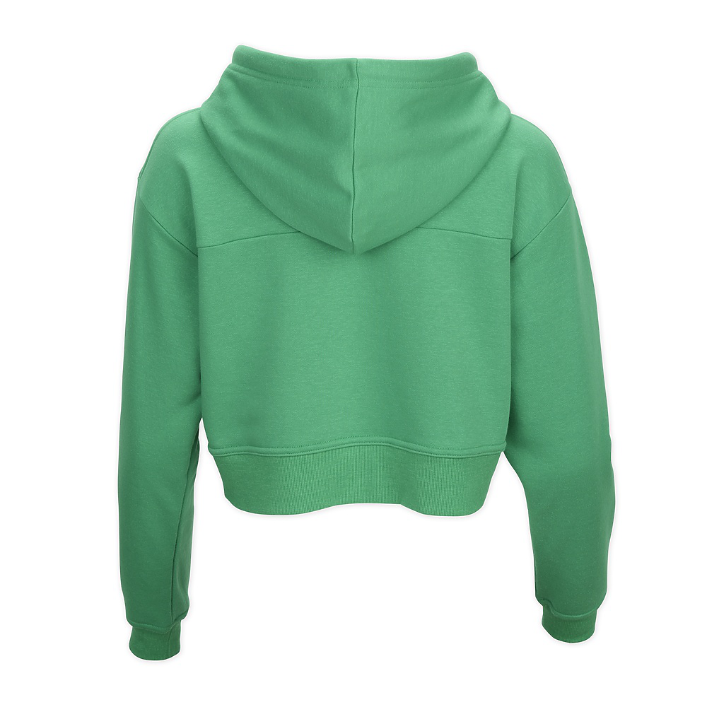 • Raise your hoodie game by adding this crazy-cute cropped style to your rotation. The cozy warmth of fleece will quickly make it a fall favorite. The ribbed cuffs and waistband add to the design and the durability.