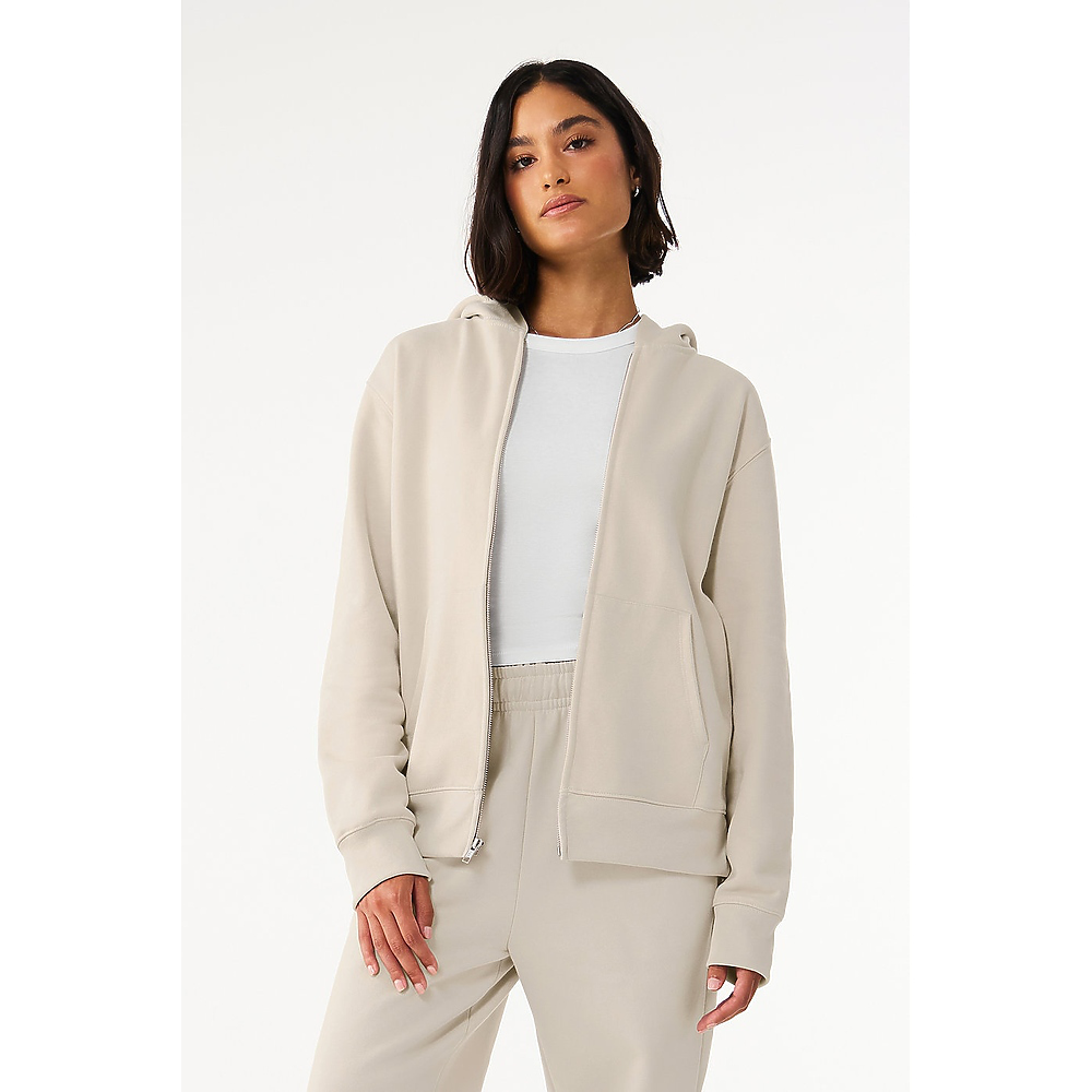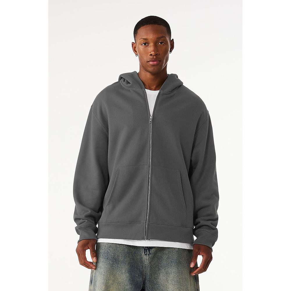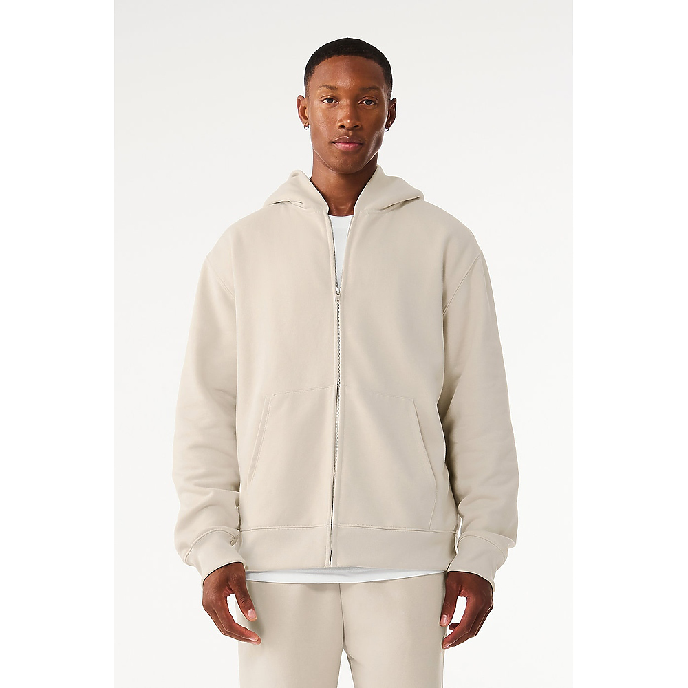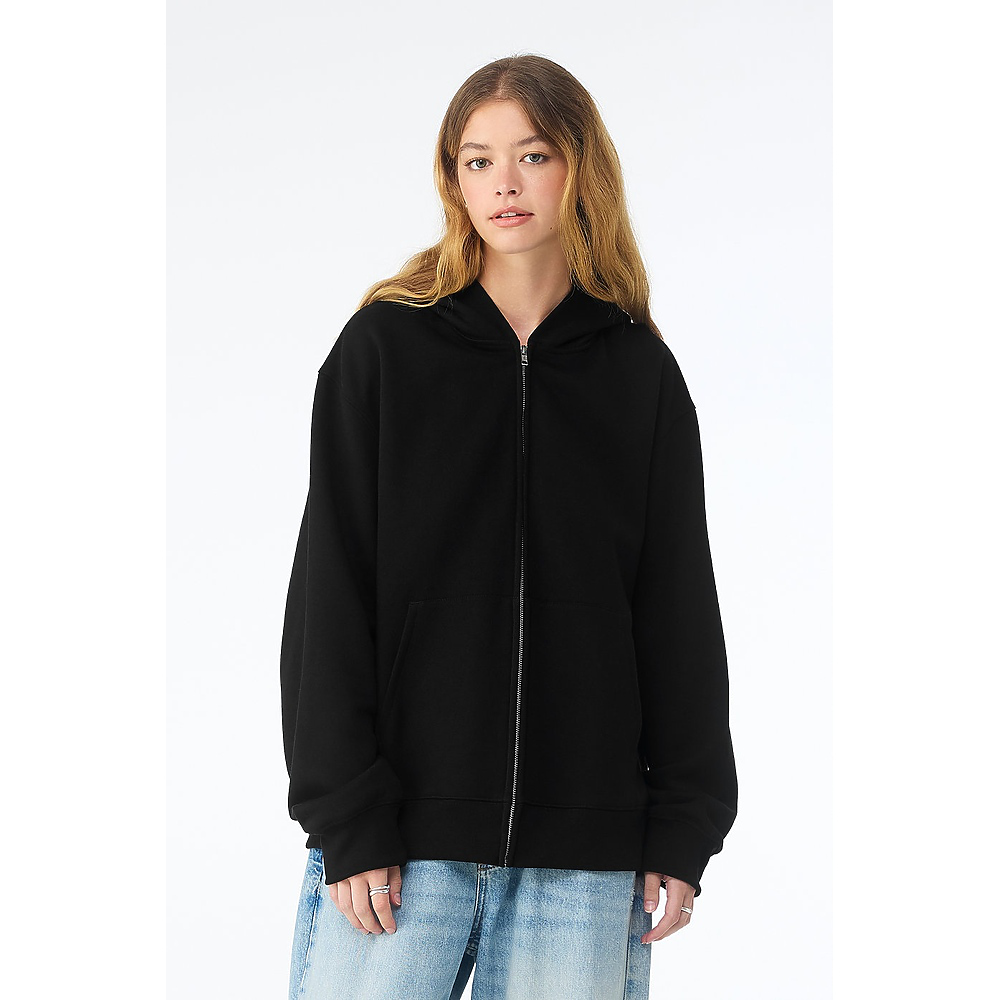 • Our Unisex 10 oz Full Zip Hoodie reimagines a wardrobe staple with heavyweight fleece and refined construction. Designed with a silver zipper and no drawcords for a streamlined finish, this hoodie is a modern nod to a Y2K favorite.