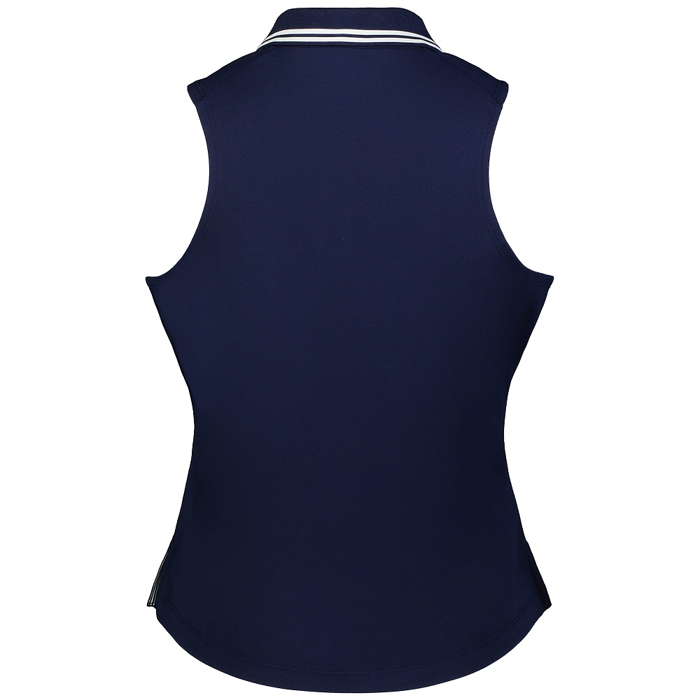 • Made with Eco-Revive® fabric, this sleeveless ladies' polo brings 4-way stretch, a rib-knit collar with striped accents, and a zippered placket, finished with racerback styling for tennis, pickleball or any other court.
