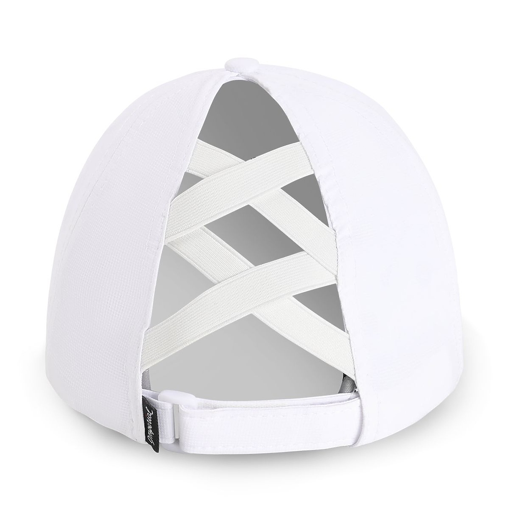 • Open Back Panel with Matching Elastic ponytail Cross Bands