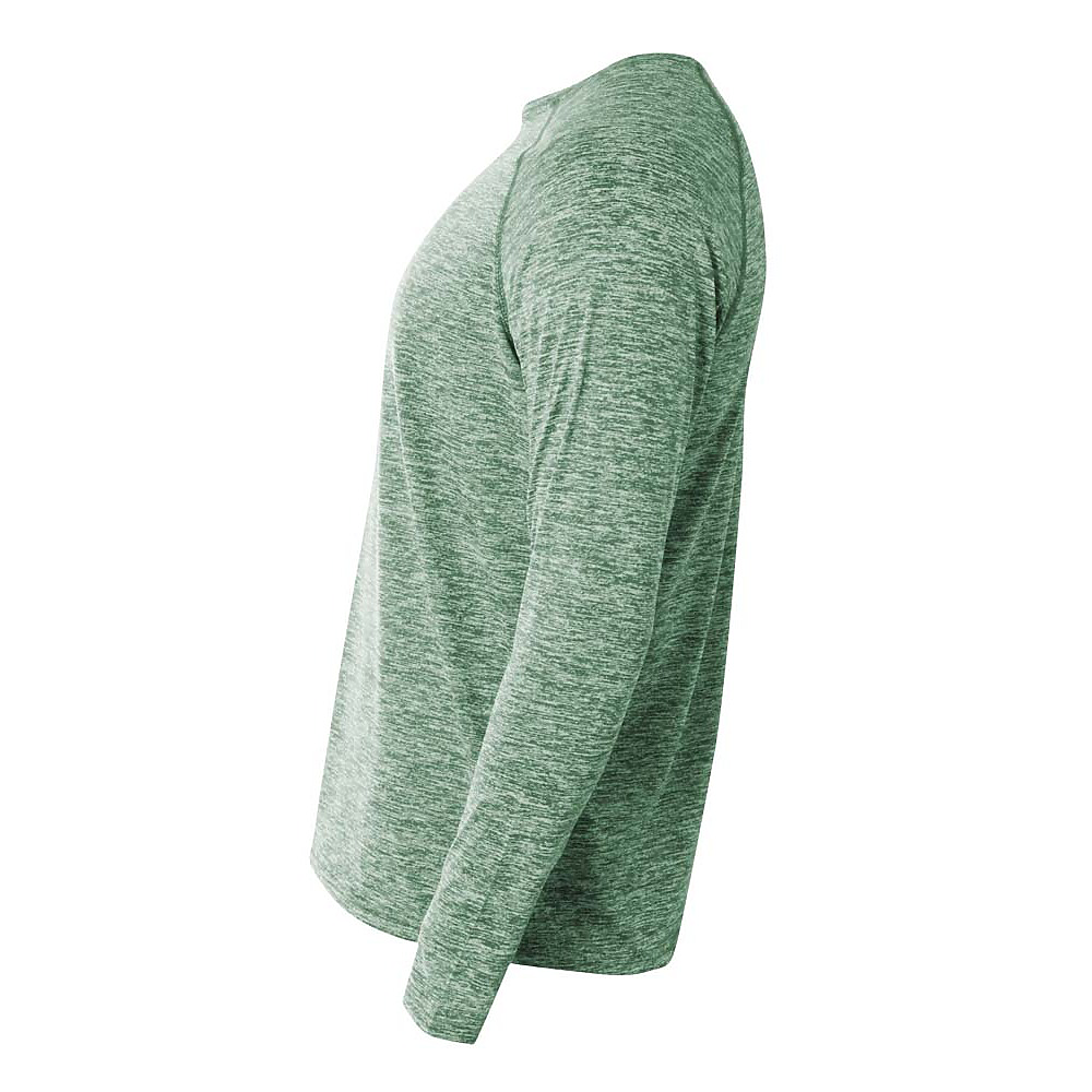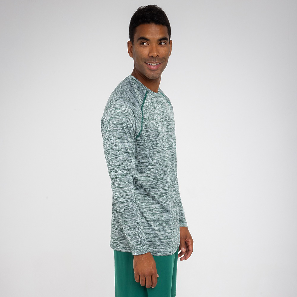 • This long sleeve tee features space dye fabric with tonal reversed cover stitched shoulder seams.