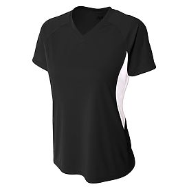 A4® WOMEN'S COOLING PERFORMANCE COLOR BLOCKED SHORT SLEEVE V-NECK