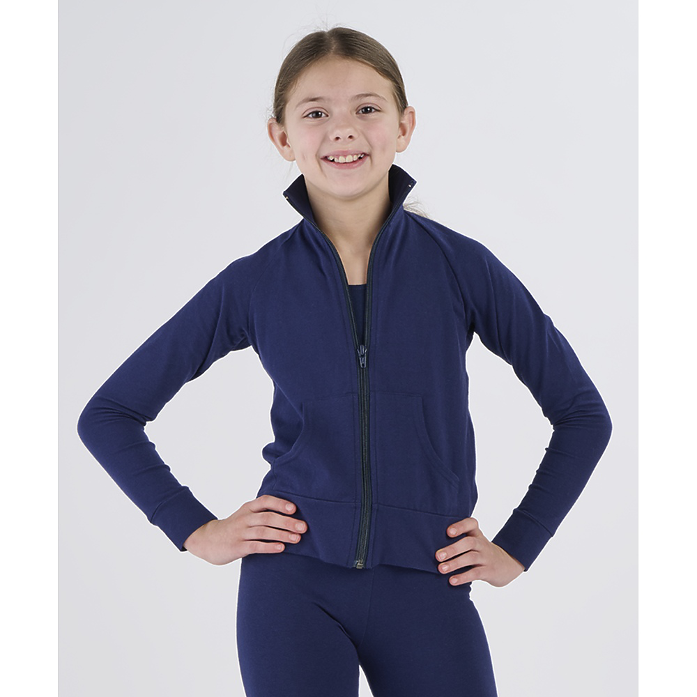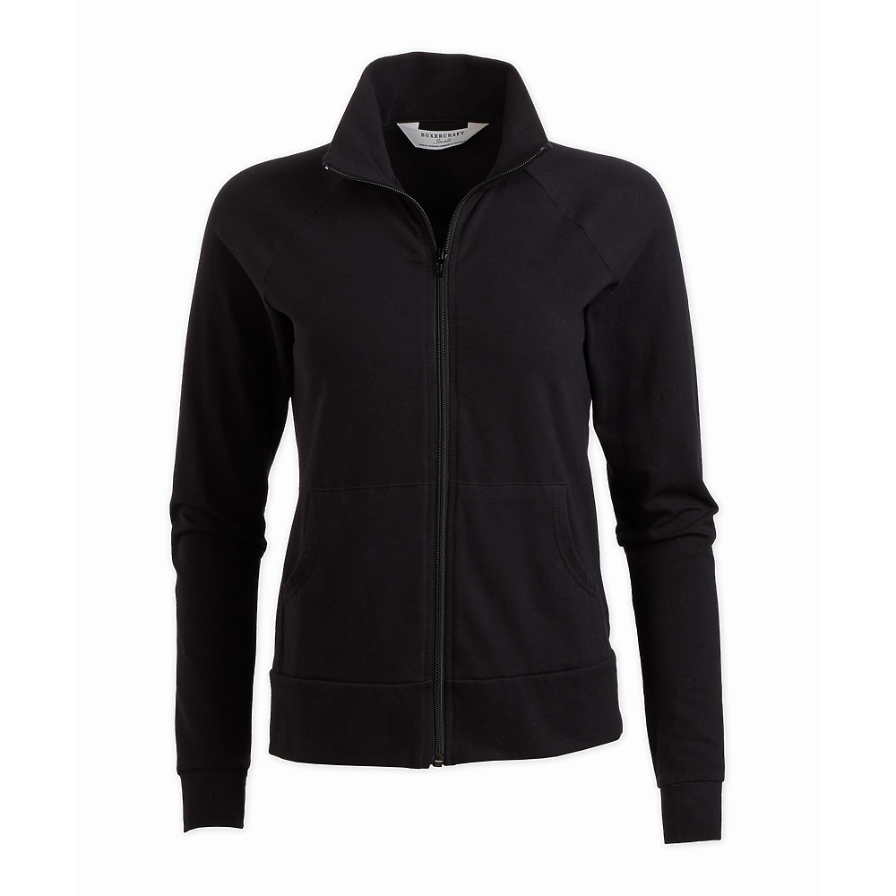 • This sporty full-zip jacket is ideal for those cool mornings when you re ready to hit the ground running. It s made from a great mix of soft cotton and stretchy material, so it fits comfortably and moves with you. Pair it with your favorite leggings, some new sneakers, and a fun t-shirt or tank top for a relaxed and sporty look.